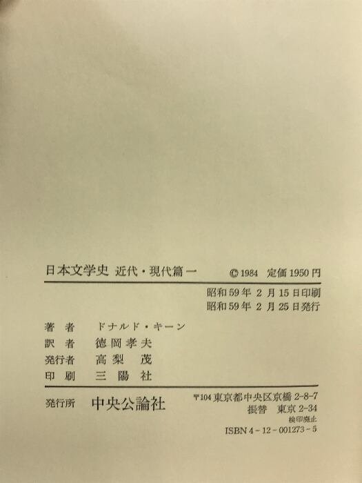 タイトル:日本文学史(1~4/全4冊セット)(近代・現代篇)中央公論社 訳:徳岡孝夫 他 昭和59年~昭和62年