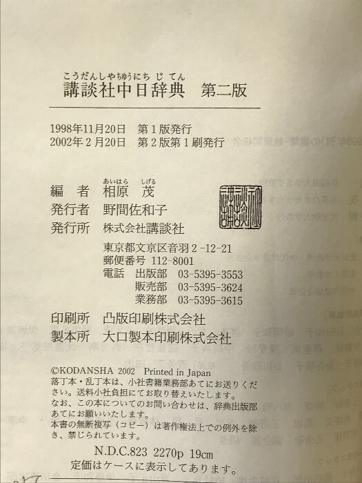 講談社中日辞典 第2版 講談社 相原 茂