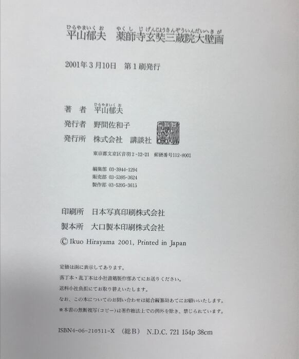平山郁夫薬師寺玄奘三蔵院大壁画 講談社 平山 郁夫