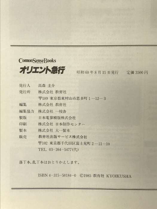 オリエント急行 ComonSenseBooks 発行:教育社 昭和60年