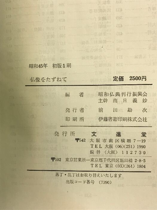 タイトル:佛像をたずねて (日本仏像百科辞典)文進堂 主幹:南日義妙 編著:昭和仏典振興会 昭和45年