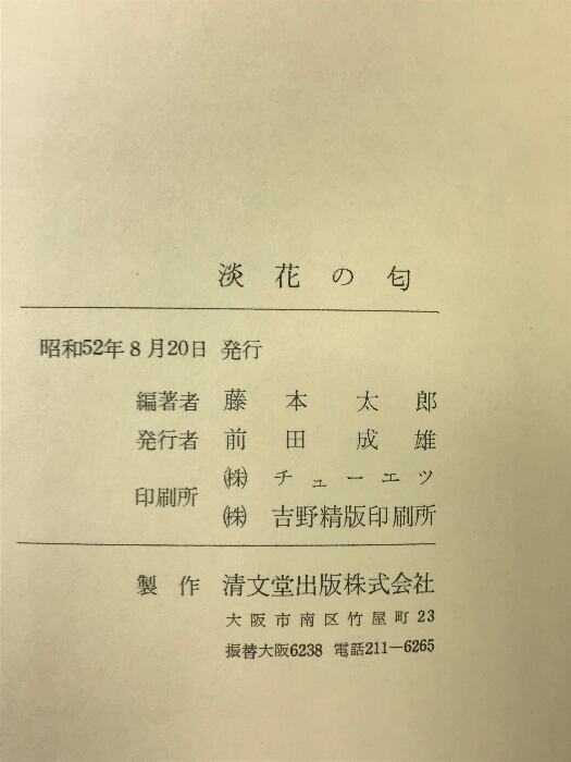 【図録】淡花の匂 清文堂 編著:藤本太郎 昭和52年