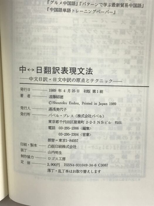 タイトル:中日翻訳表現文法: 中文日訳・日文中訳の原点とテクニック バベル 遠藤 紹徳