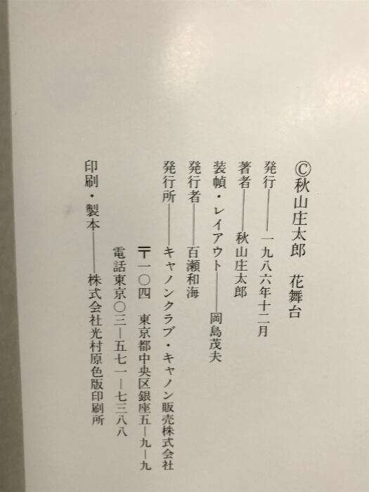 タイトル:【図録】秋山庄太郎 -花舞台- Canon 発行:キャノンクラブ・キヤノン販売株式会社 著:秋山庄太郎 1986年