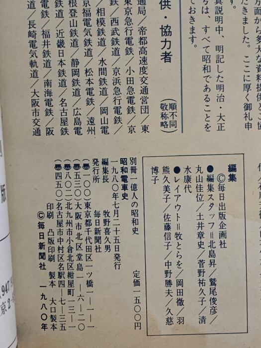 別冊 一億人の昭和史 私鉄90年の軌跡 昭和電車史 1980 毎日新聞社