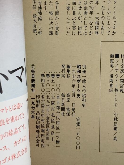 タイトル:別冊 一億人の昭和史 昭和スポーツ史 オリンピック80年 1976 毎日新聞社