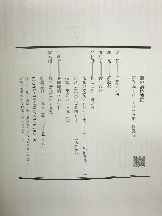 灘の酒 博物館 発行:講談社 昭和58年 神戸市