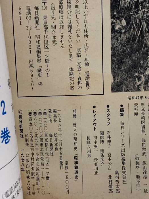 別冊 一億人の昭和史 機関車100年の履歴書 昭和鉄道史 1978 毎日新聞社