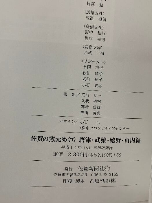 佐賀の窯元めぐり 唐津・武雄・嬉野・山内編 平成14年 初版 佐賀新聞社