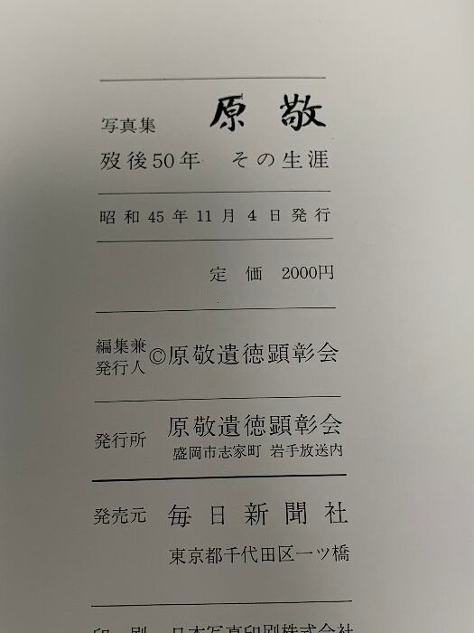 写真集 原敬 死後五〇年 その生涯 原敬遺徳顕彰会 1970