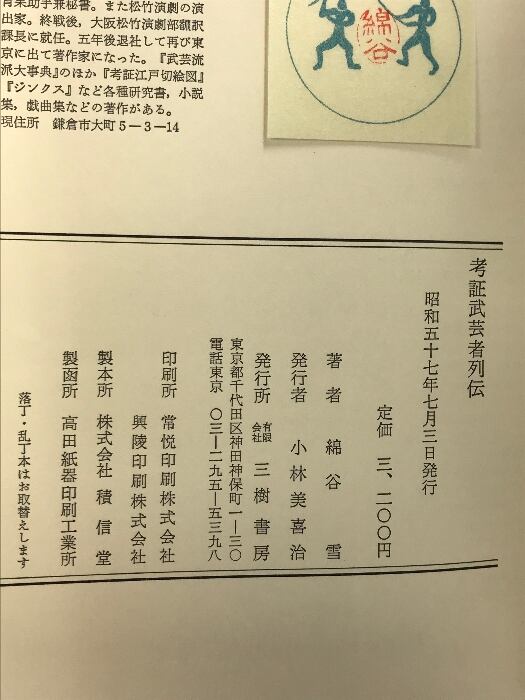タイトル:考証武芸者列伝 発行:三樹書房 著:綿谷 雪 昭和57年