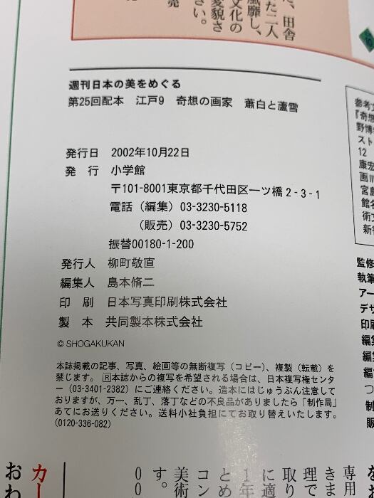 タイトル:週刊 日本の美をめぐる No.25 奇想の画家 蕭白と蘆雪 江戸9 小学館ウイークリーブック
