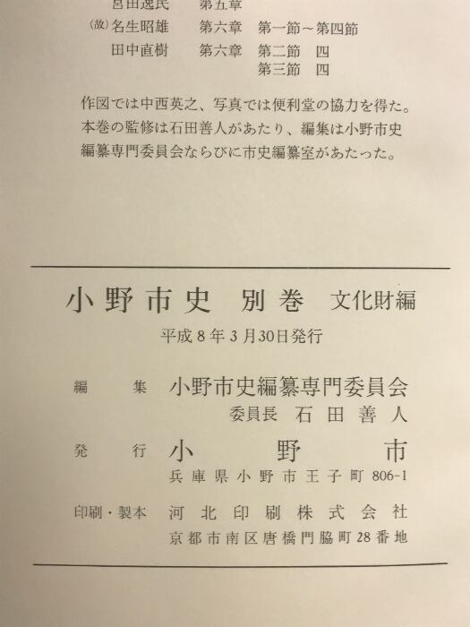 小野市史(別巻)(文化財編)(兵庫県)発行:小野市 平成8年