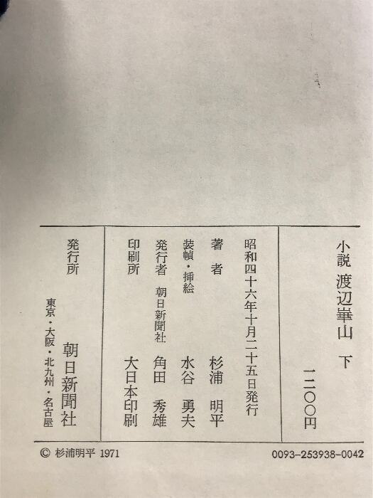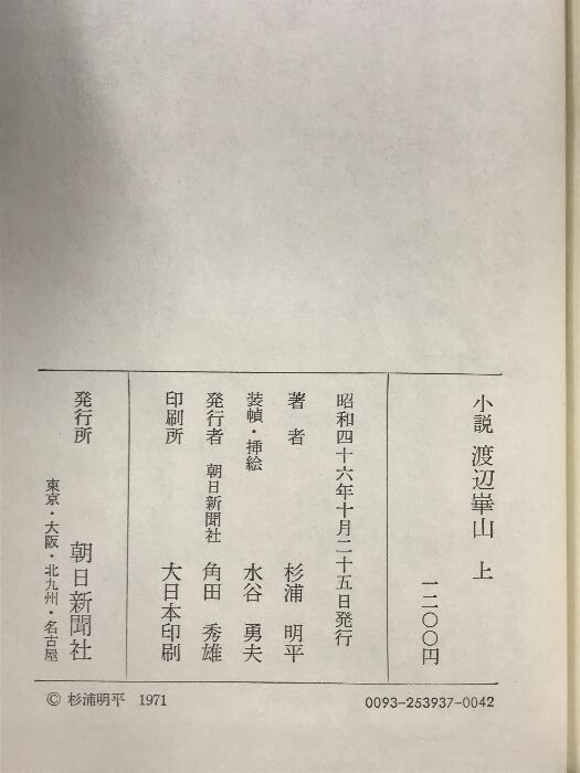 タイトル:小説 渡辺崋山(上・下巻/全2冊セット) 発行:朝日新聞社 著:杉浦明平 昭和46年