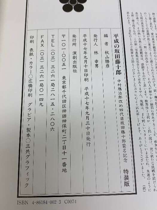 タイトル:平成の坂田藤十郎 特装版 演劇出版社 秋山 勝彦