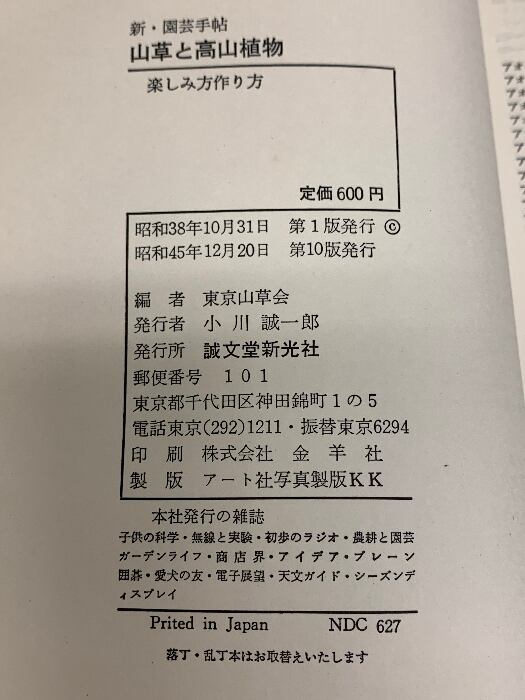タイトル:山草と高山植物 新園芸手帖 楽しみ方作り方 東京三送会編 誠文堂新光社