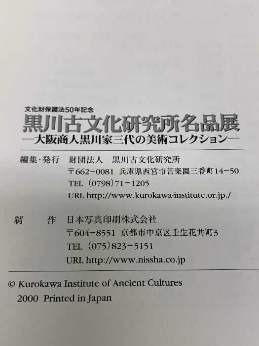 図録 黒川古文化研究所名品展 大阪商人黒川家三代の美術コレクション 文化財保護法50年記念 黒川古文化研究所 2000
