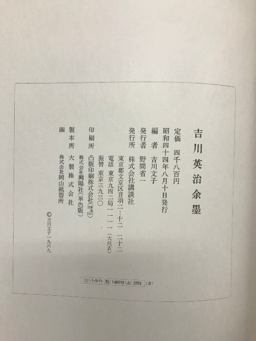 タイトル:【図録】吉川英治余墨 発行:講談社 編:吉川文子 昭和44年