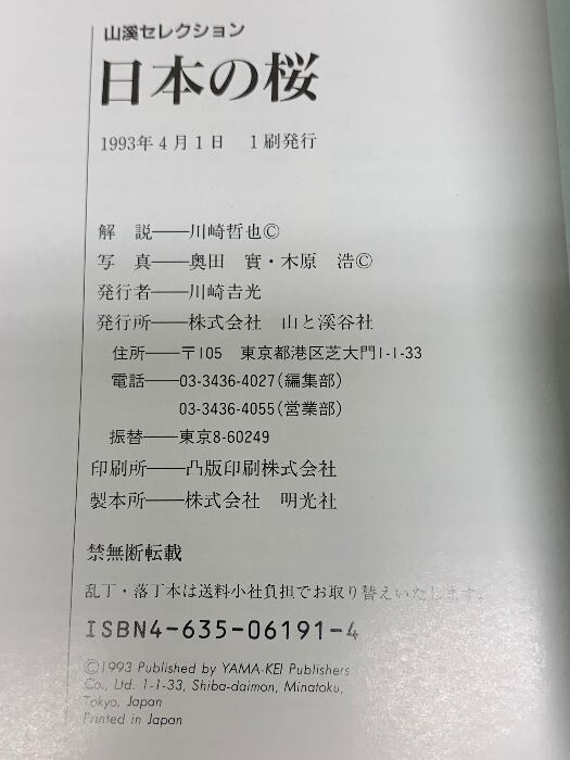 写真集 日本の桜 山渓セレクション 山と渓谷社 奥田賽 木原浩