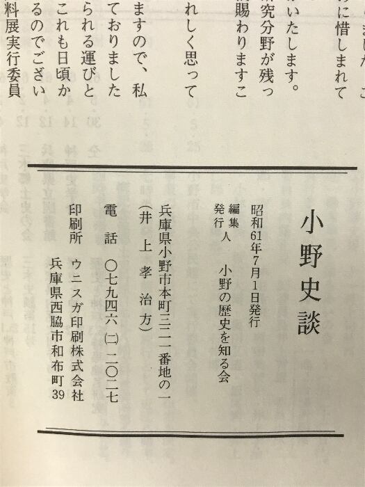 播磨 小野史談 (兵庫県)(第7号.第21号/全2冊)編発行:小野の歴史を知る会 昭和61年・平成5年