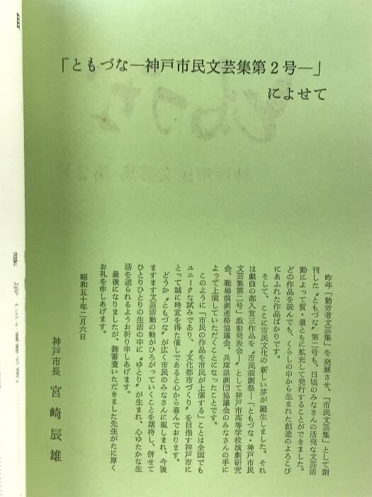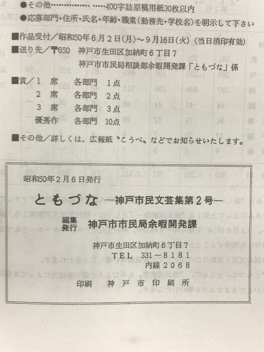 タイトル:ともづな-神戸市民文芸集-(第2号)編発行:神戸市市民余暇開発課 昭和50年