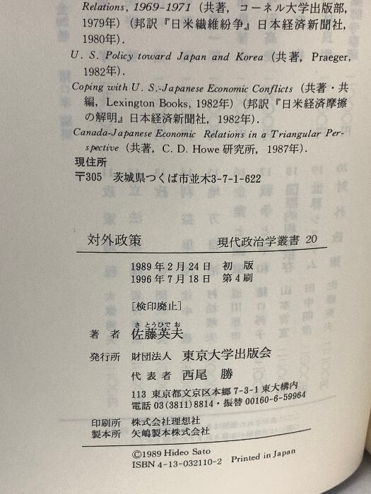 対外政策 (現代政治学叢書 20) 東京大学出版会 佐藤 英夫