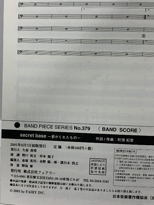 タイトル:バンドスコアピースBP379 secret base~君がくれたもの~ / ZONE フェアリー