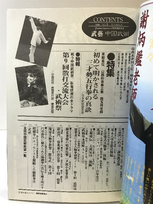 タイトル:武藝 「中国武術」特集:山西派車氏形意拳 特報:散打交流大会 1996年夏 BABジャパン 「秘伝」増刊