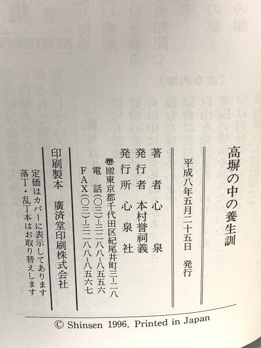 タイトル:高塀の中の養生訓 心泉社 心泉