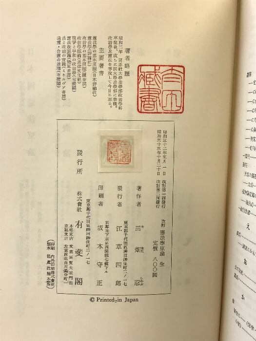 改訂 憲法学原論(全)発行:有斐閣 著:田畑忍 昭和33年