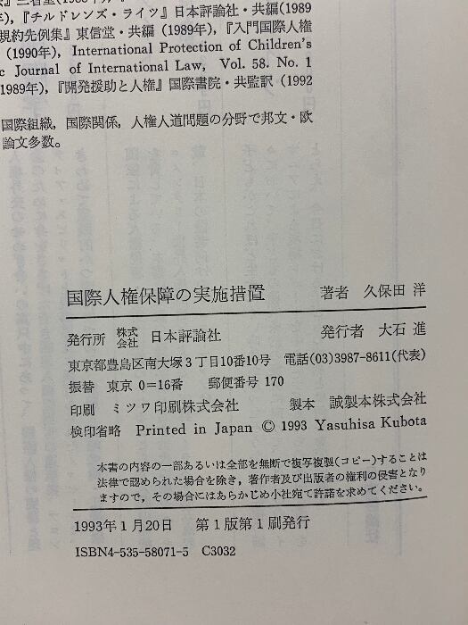 タイトル:国際人権保障の実施措置 日本評論社 久保田 洋