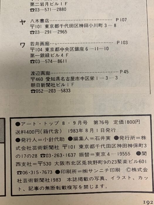 アート・トップ No.76 1983年8・9月号 隔月刊 上村松篁 伝統と近代の邂逅 芸術新聞社