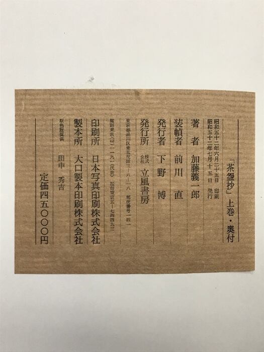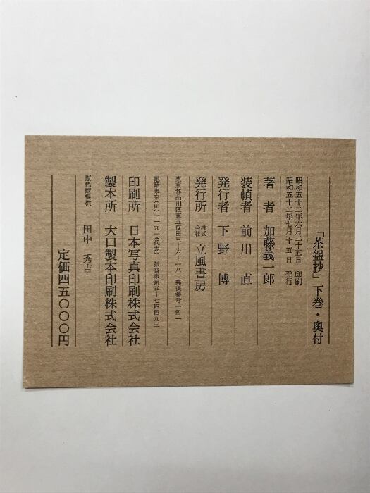 『茶盌抄』(上・下巻/全2冊セット)発行:立風書房 著:加藤義一郎 昭和52年
