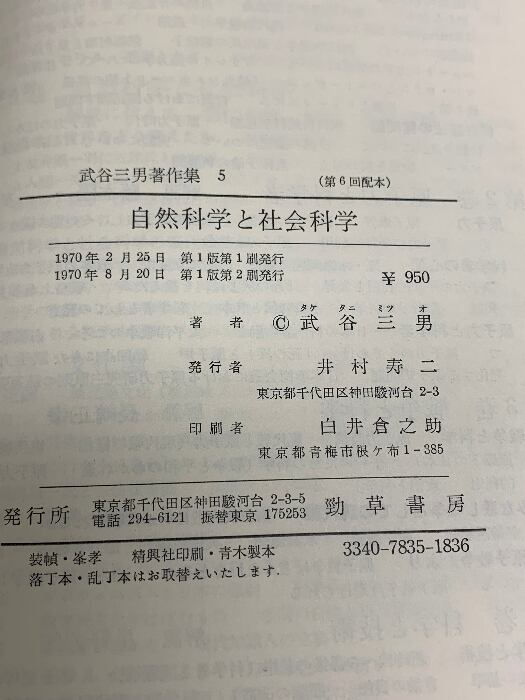 タイトル:武谷三男著作集〈第5〉自然科学と社会科学 勁草書房