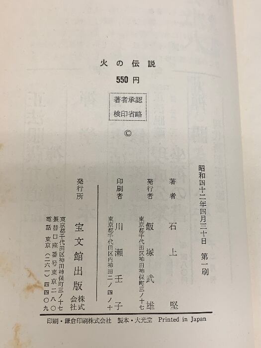 タイトル:火の伝説 (1967年) 宝文館出版 石上 堅