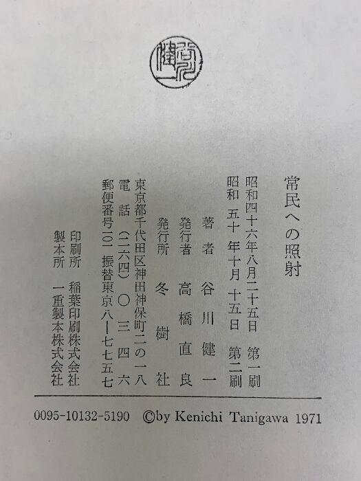 タイトル:常民への照射―谷川健一評論集 (1971年) 冬樹社 谷川 健一
