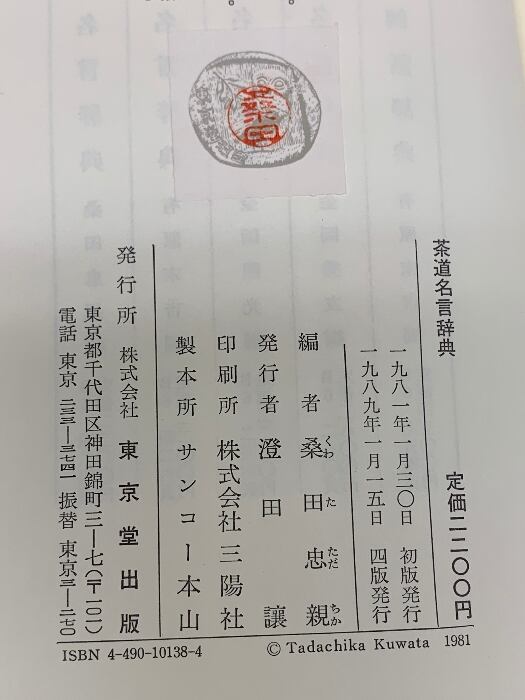 タイトル:茶道名言辞典 東京堂出版 桑田忠親