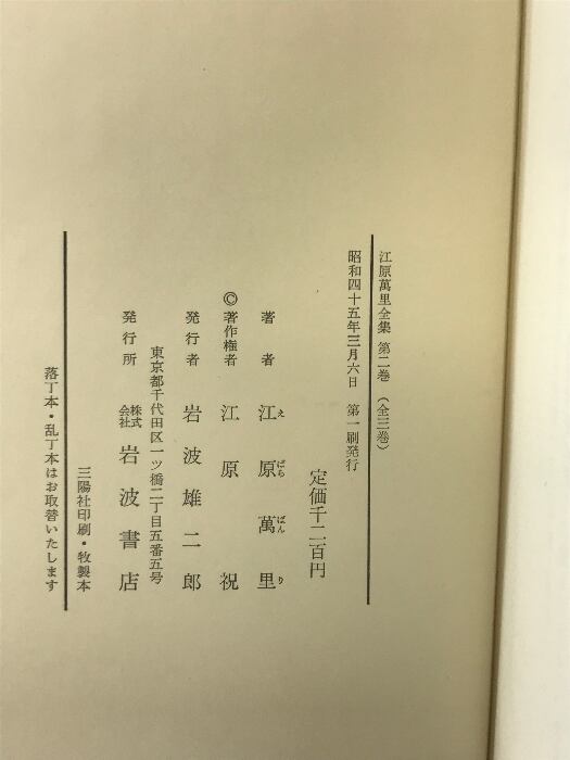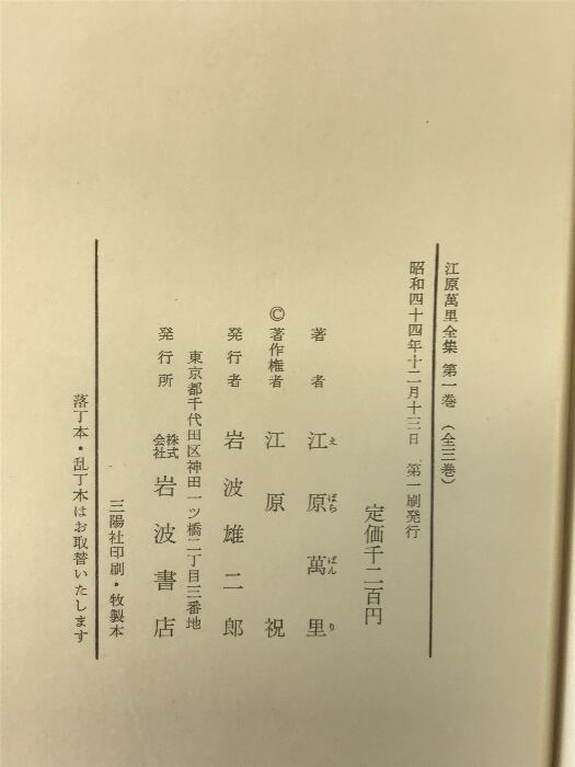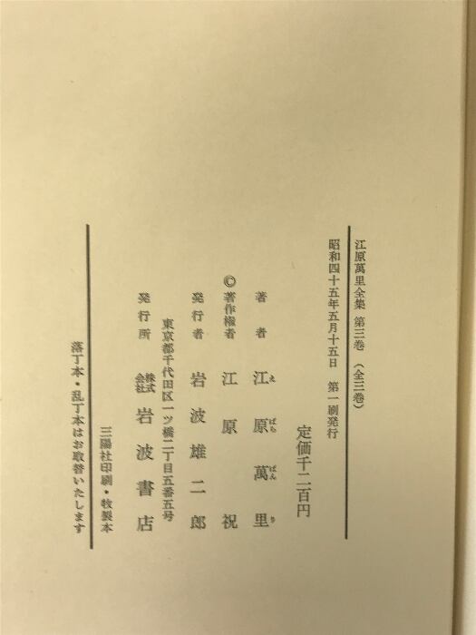 タイトル:江原萬里全集(1~3巻/全3冊セット)発行:岩波書店 昭和44年~昭和45年