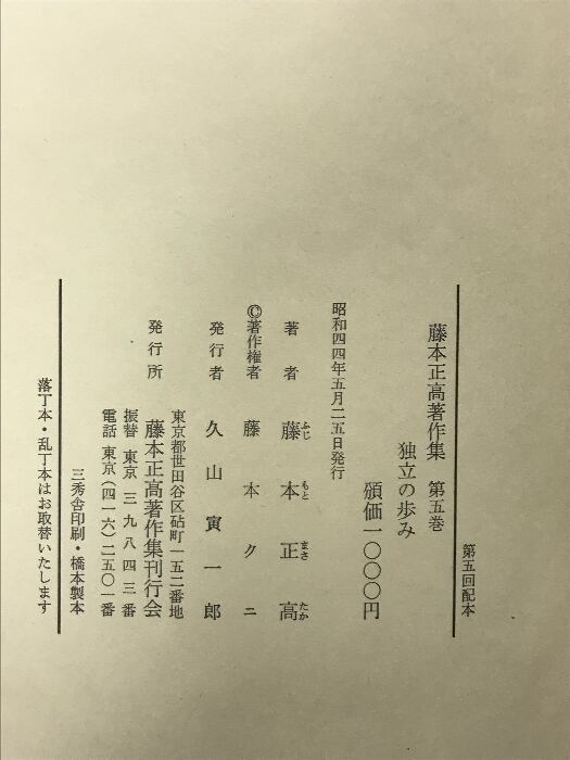タイトル:藤本正高著作集(1~5巻/全5冊セット) 発行:藤本正高著作集刊行会 著:藤本正高 昭和43年~昭和44年