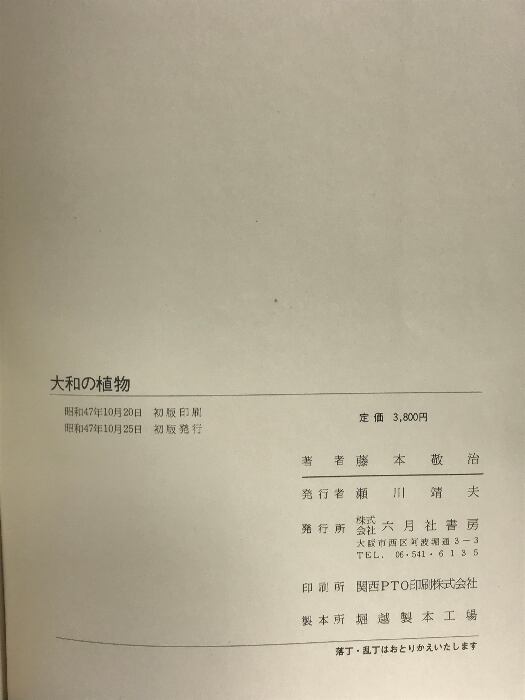 タイトル:大和の植物 発行:六月社書房 著:藤本敬治 昭和47年