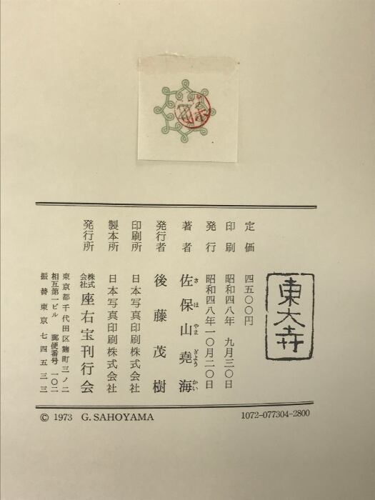 タイトル:【図録】東大寺 -名宝と自然の絵巻- 発行:座右宝刊行会 著:佐保山堯海 昭和48年