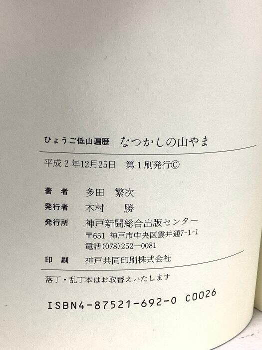 ひょうご低山遍歴 なつかしの山やま 神戸新聞総合出版センター 多田 繁次