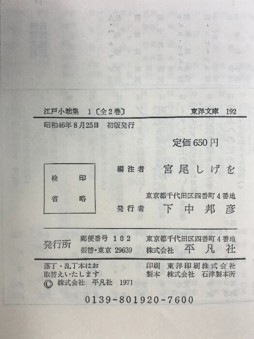 タイトル:江戸小咄集 (1) 東洋文庫 192 平凡社 宮尾 しげを