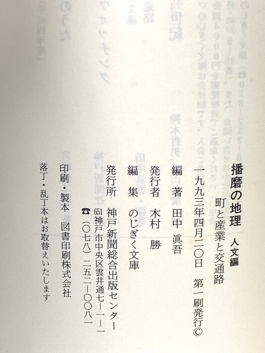 播磨の地理 人文編: 町と産業と交通路 (のじぎく文庫) 神戸新聞総合出版センター 田中 眞吾