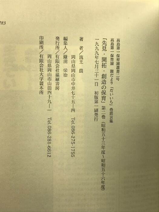 先見・開拓・創造の保育―高島第一保育園園だより「だいいち」巻頭言集 (第2巻) (高島第一保育園叢書 (2号)) 流王 農