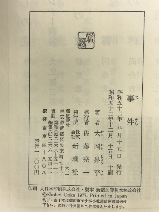 「事件」 新潮社 著:大岡昇平 昭和52年