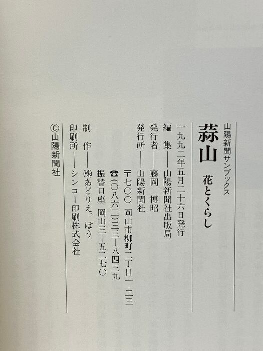 山陽新聞サンブック 蒜山 花とくらし 山陽新聞社 徳山 蒜天