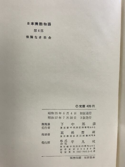 タイトル:日本残酷物語〈第4部〉保障なき社会 平凡社 編:下中邦彦