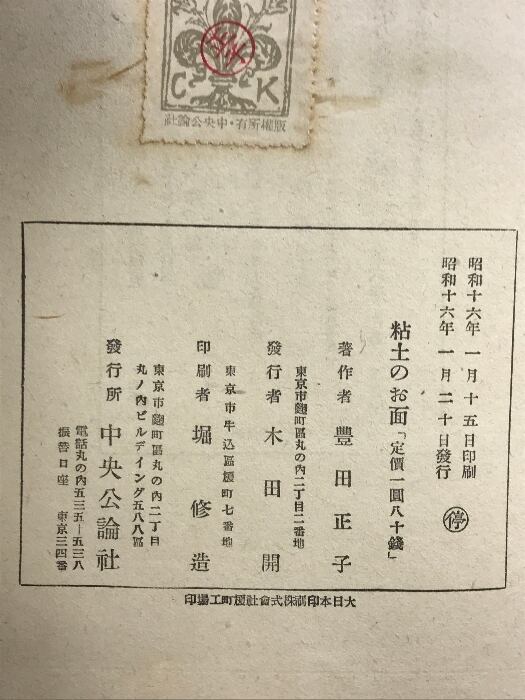 タイトル:粘土のお面 中央公論社版 著:豊田正子 昭和16年