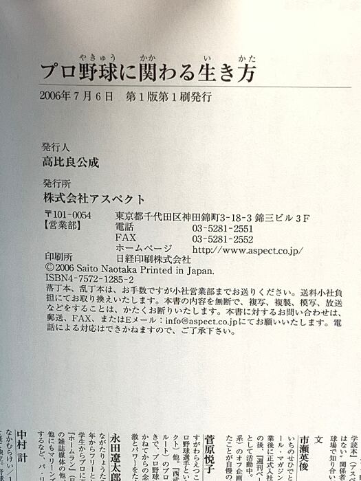 タイトル:プロ野球に関わる生き方 アスペクト 斉藤直隆